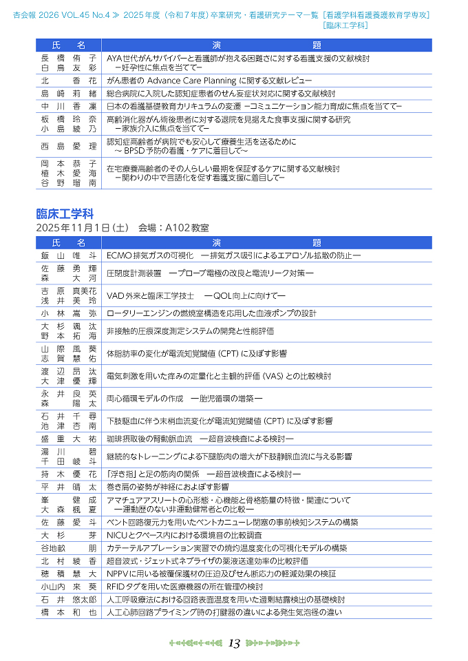 卒業研究・看護研究テーマ一覧 13